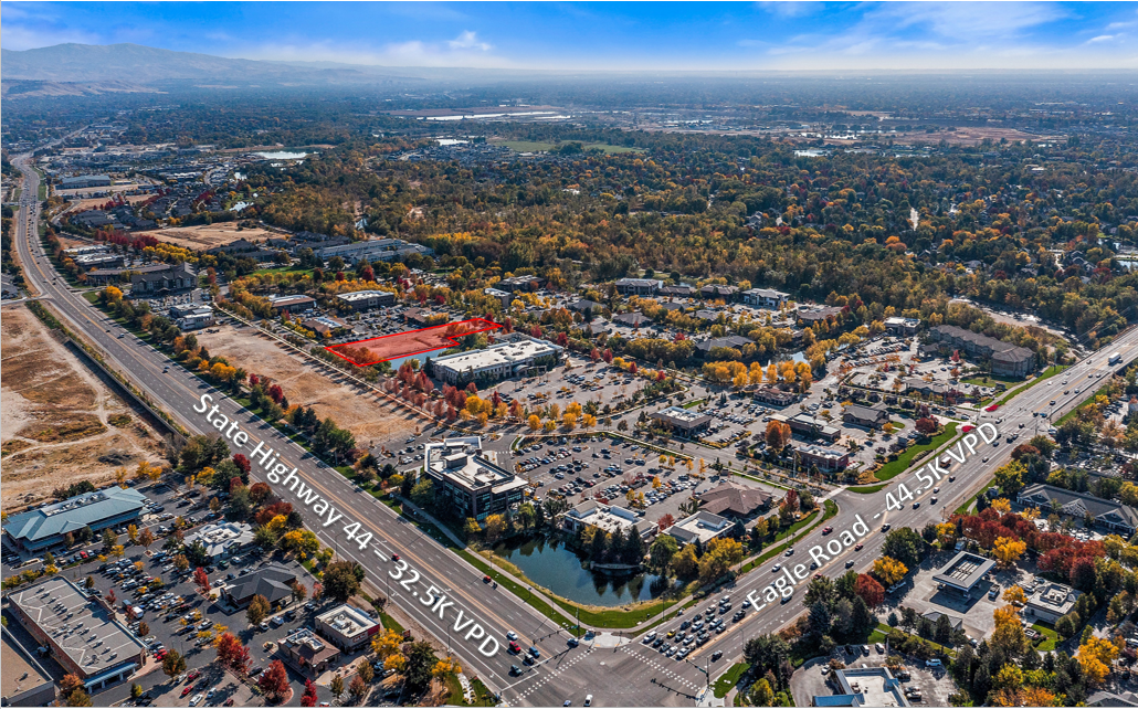 This site is near the intersection of Eagle Road and State Highway 44 a short walk from the 96-room Homewood Suites. Situated perfectly to capture the 44,500 vehicles that pass everyday on Eagle Road, the 32,500 that pass every day on SH-44, and the neighboring traffic from the hotel. Grand monument signage is approved for the user which will provide excellent visibility.